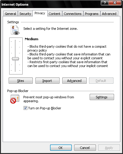 برای ورود به سامانه شما باید مطمئن شوید که مرورگر شما (مانند Internet Explorer) اجازه دسترسی به Cookie‌ها را به سایت‌ها میدهد. این گزینه در حالت پیش فرض فعال است ولی اگر شما بعد از ورود (Login) به سامانه باز هم نمیتوانید به قسمت‌های محافظت شده دسترسی پیدا کنید لازم است تنظیمات مرورگر خود را تغییر دهید. نحوه این کار در اینجا برای مرورگر Internet Explorer توضیح داده شده است. در سایر مرورگر‌ها هم روش کار مشابه است.